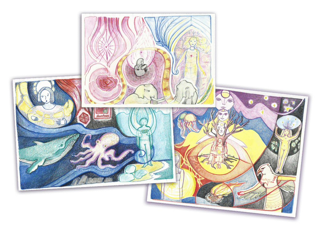 Servicio personalizado de canalización espiritual a través del arte, en el que se retratan los aspectos más luminosos con los que tu alma decide trabajar. La obra funciona como guía, acompañamiento y recordatorio de las claves que pueden ayudarte en los distintos tránsitos de tu vida.